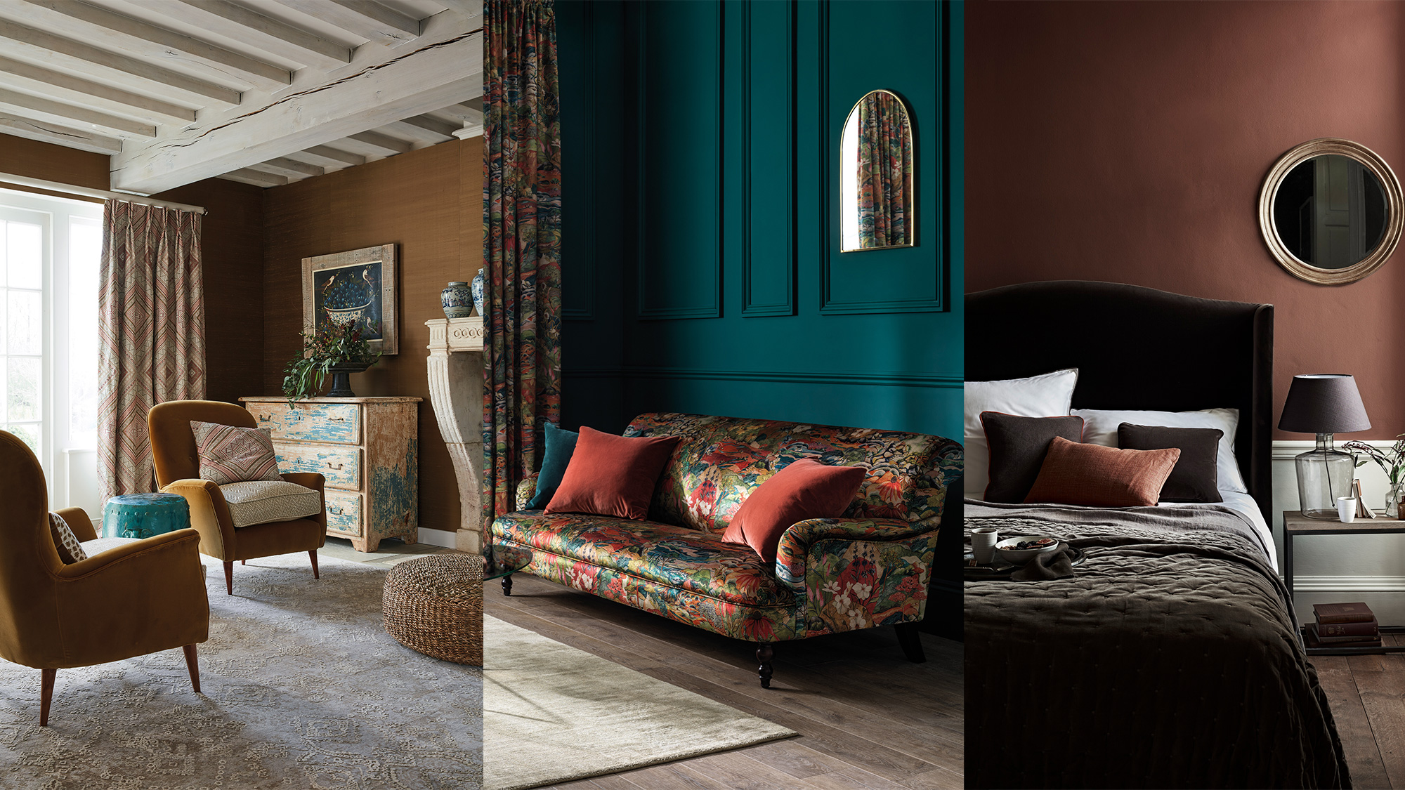 Designers are moving away from minimalist, pale grey or white interiors and embracing deep, saturated colors with natural undertones. Think smoky jade, olive green, inky brown, oxblood red, and rich chocolate hues.