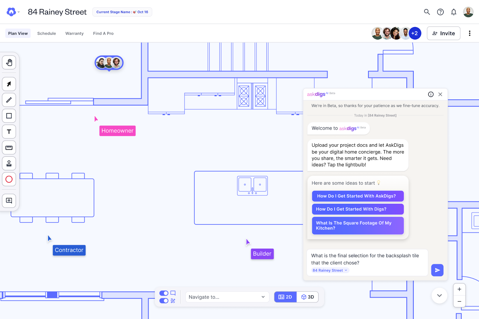 If you can’t find the information you need, Ask Digs AI can surface details about the build in seconds. Whether it’s a selection choice, an approval status, or a drawing update, you get answers instantly, saving hours every week across the team.