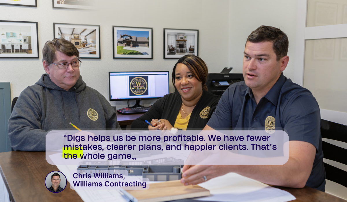“Even if the paperwork is right, mistakes still happen. With Digs, you have a visual reference — does this door look like the spec? Yes or no.” - Williams Contracting